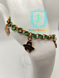 Chainmail bracelet made from Anodized Aluminum rings and enamel charms. Measures to be 8 inches long. Will ship within 3 business days of order.
