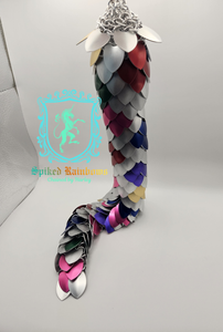 Product details for Large Dragon Tail - Silver with Green, Red, Pink, Blue, Purple, and Gold Spots.