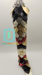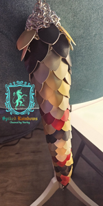 Dragon Tail made from Anodized Aluminum Scales and Bright Aluminum Rings. Measures to be 17inches in length. Has a lobster claw closure. Great for Cosplay, LARPing or Ren Faires. Will ship within 3 business days of order.