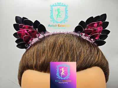 Velvet wrapped wire headband with Anodized Aluminum Scales and Rings. Great for Cosplay, Ren Faires, etc. Super cute and comfortable to wear. Will ship within 3 business days.